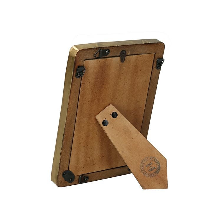 マーブル模様のレジン素材をベースに、枠組みに真鍮を使用。ゴールドの色合いが高級感のあるデザインです。背面には置き型と壁掛けの使い方が可能なスタンドと吊り金具付き。フォトフレームはすべて手作業で作られたもので、装飾も手作業で施され、ひとつひとつ異なった風合いが感じられます。フレームにはイラストが描かれた中紙がセットされているため、インテリアとしてそのまま飾ることができます。