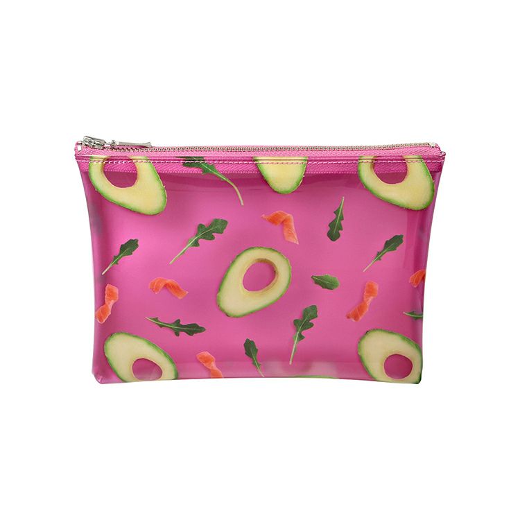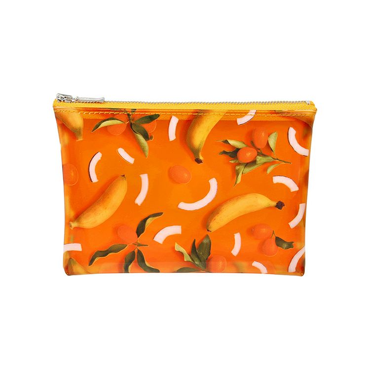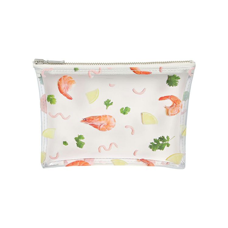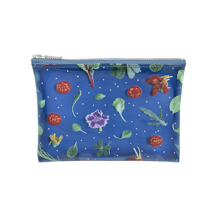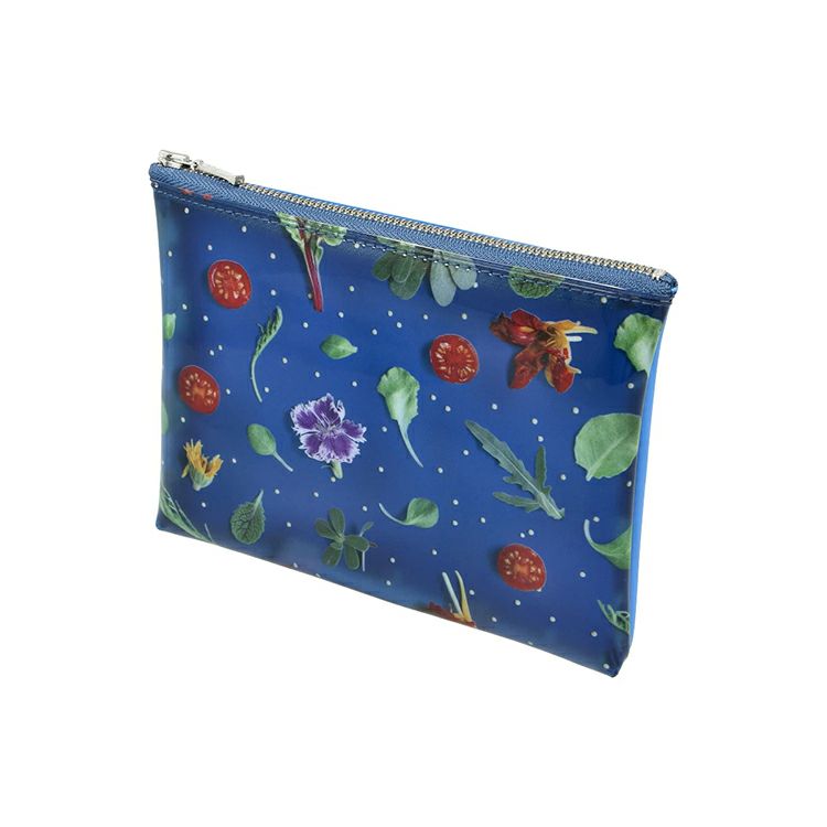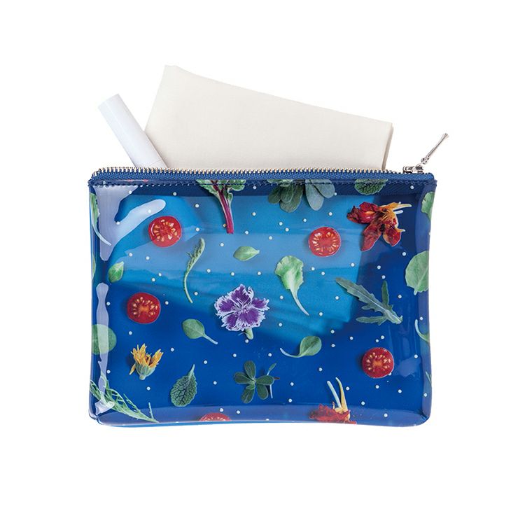 食材を並べたパターンの遊び心あふれるカラフルなポーチ(Mサイズ)