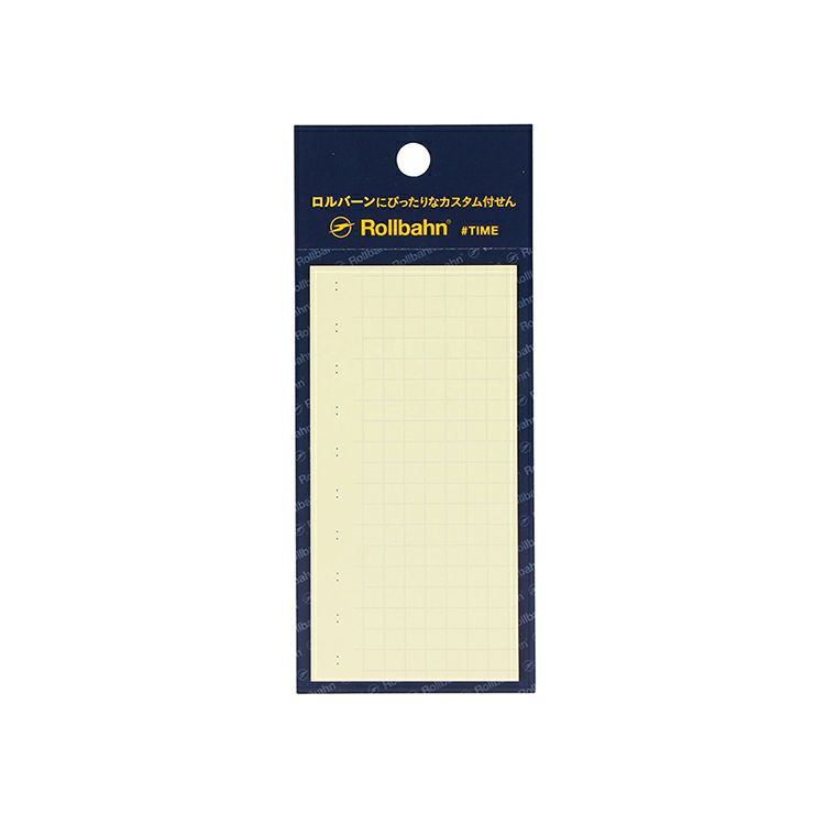 上部が糊付けされた付せん。ロルバーンの豊富なメモページを、お好みでカスタマイズできます。縦向きに使うタイムスケジュールは、メモページを手帳のようにカスタマイズできるアイテム。20シート入り。端には時刻が記入できるスペースを設け、その他は方眼メモになっています。時間軸で予定管理や予定の組み立てができるフォーマットです。方眼メモはロルバーンのメモページと同じ5mm。忙しい日の業務計画や、外出先でのタイムスケジュールなど、時間管理が必要なシーンで活躍します。ロルバーンの紙色に合わせたクリーム色と、グリッドに合わせたデザインで、ページに馴染みます。自由に貼り替えられる、付せんならではの手軽さが魅力。一度貼ってもきれいにはがせます。ノートにはもちろん、ちょっとしたメモを書き留めて資料やデスク、PCの端などに貼り付けて使えます。ロルバーン ポケット付メモ、ロルバーンダイアリーのLサイズ1ページで、横に3枚程度が貼れる大きさです。