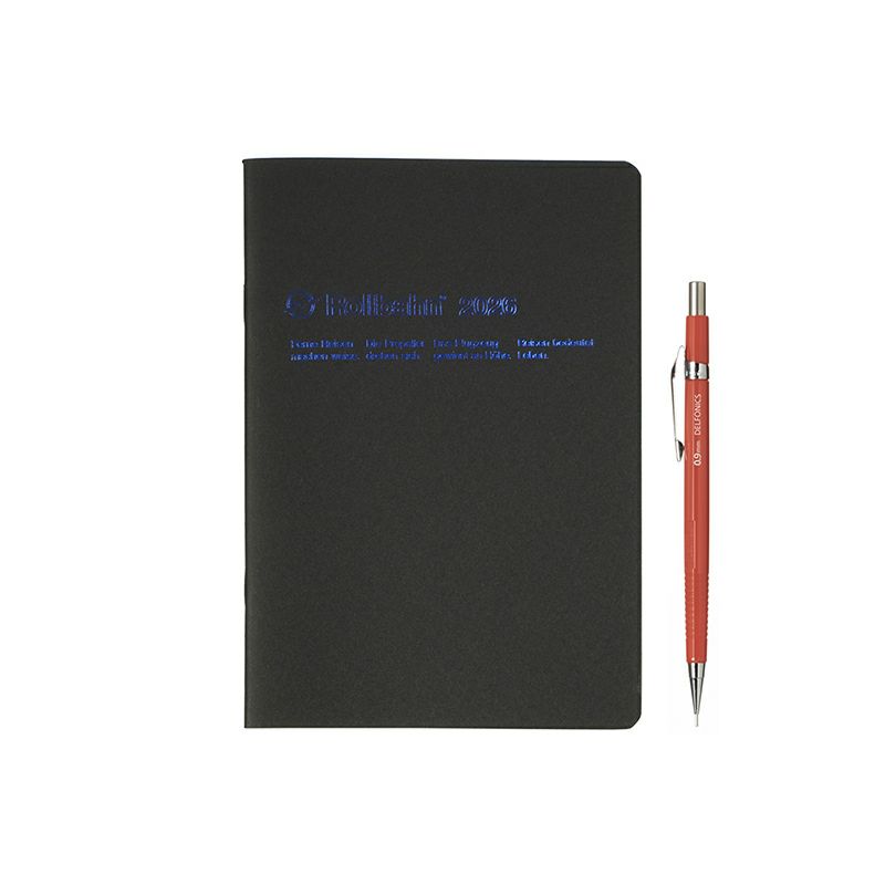 マットな質感の表紙を使った落ち着いた風合いの薄くて軽い、ホチキス綴じノートタイプのロルバーンダイアリー(2026年版/2025年10月始まり手帳)