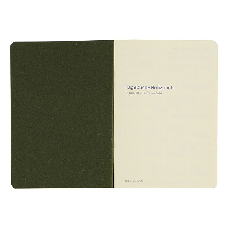 マットな質感の表紙を使った落ち着いた風合いの薄くて軽い、ホチキス綴じノートタイプのロルバーンダイアリー(2026年版/2025年10月始まり手帳)