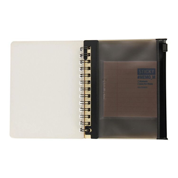 デルフォニックスの定番、ロルバーン ポケット付メモとロルバーンダイアリーのリングに取り付けができるスライダーケース。付箋やシール、クリップなどの小物の収納に役立ちます。