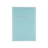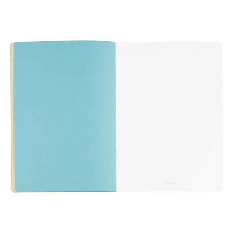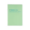 クリア、クリアピンク、クリアブルー、クリアグリーン、クリアグレーの全5色。ロゴにはきらりと光る箔押しを施し、それぞれの個性を引き立てました。クリアがゴールド箔、クリアピンクが小さな粒がきらめくオーロラ箔、クリアブルーが細かな粒がきらめくオーロラ箔、クリアクグリーンがスカイブルー箔、クリアグレーがブルー箔です。プラスチック素材の表紙、裏表紙で、淡いすりガラスのような風合いが魅力。指紋が付きづらい、さらさらとした手触りです。プラスチック素材の表紙と色紙を重ねた仕様。すりガラスのような表紙から中の色味が透けて見える、優しい発色です。ホチキス綴じのノートタイプは、薄型・軽量で持ち運びにも便利。