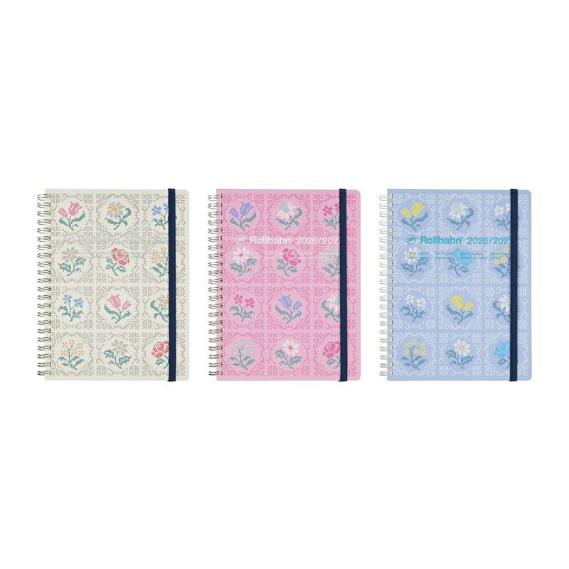 【A5サイズ】かぎ針で編んだような花柄のロルバーンダイアリー (2026年版/2026年3月始まり手帳)