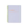 表紙の罫線やゴムバンドにライトブルーをあわせた清潔感漂うホワイト、メタリックグリーンのリングとオレンジのロゴでアクセントを効かせたライトパープルの全2色が仲間入り。そのほかに、ライトイエロー、ベビーピンク、ライトブルー、ライトグリーンがあります。ロルバーンのメモページと同じ5mm方眼を表紙に配しています。ゴムバンドは、ホワイトはライトブルー、ライトパープル、ライトイエロー、ベビーピンク、ライトブルー、ライトグリーンはホワイトです。リングは、ライトイエローにはピンク、ベビーピンクにはグレー、ライトブルーにはイエロー、ライトグリーンにはブルー、ホワイトにはピンク、ライトパープルにはメタリックグリーンを合わせています。ロゴやリングのカラフルな配色がポイントです。爽やかなパステルカラーをベースに、どこか懐かしさも感じるカラーリングに仕上げました。