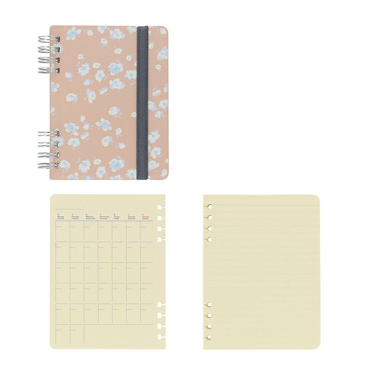【お得なセット】ロルバーン フレキシブル カバー 360° フルールM + ダイアリーリフィル フリーマンスリーM + リフィル罫線M