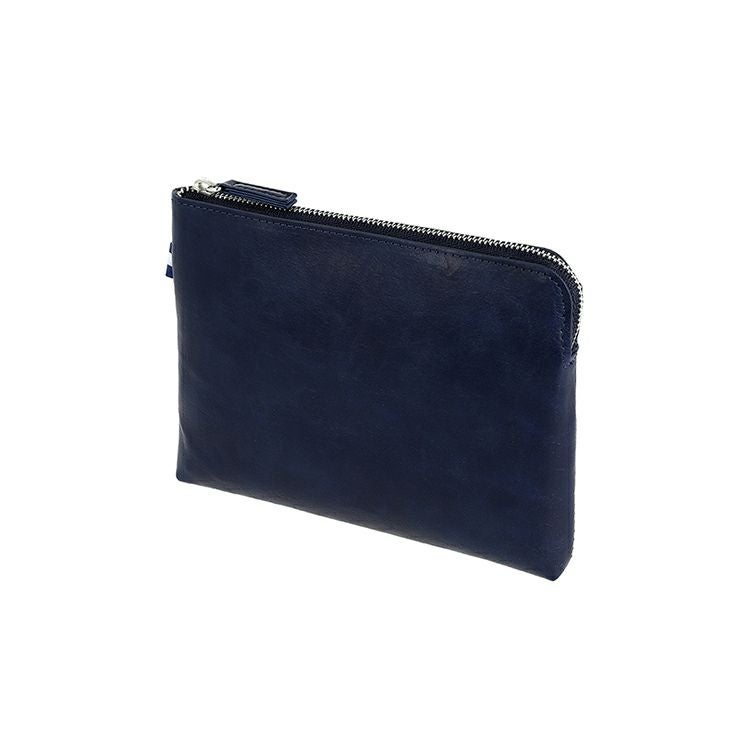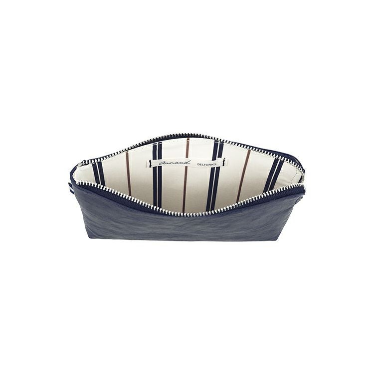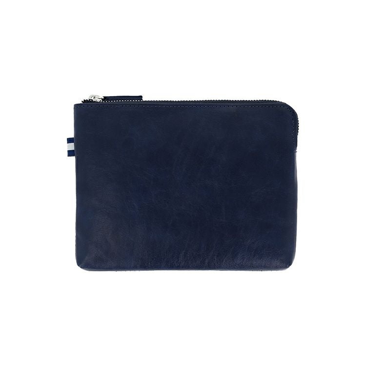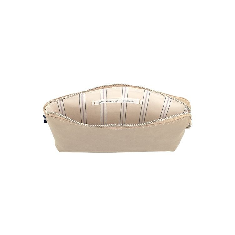 内生地にストライプを配した、ビジネスシーンにも相応しいポーチ(横16×縦12cm)