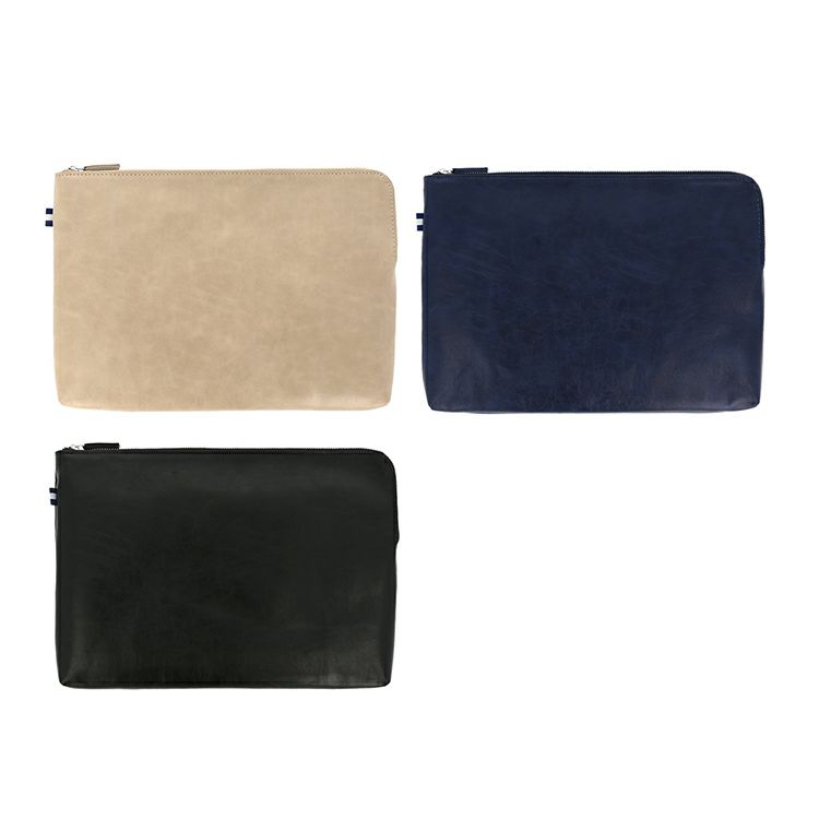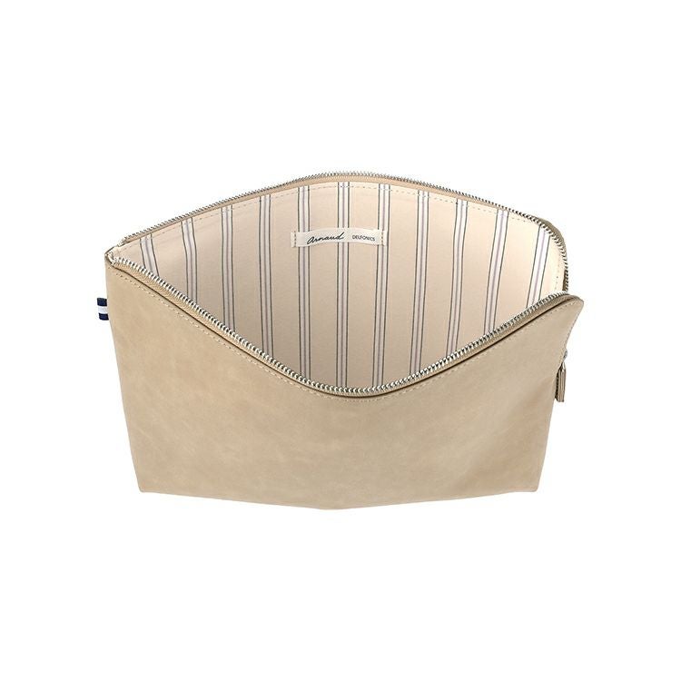 内生地にストライプを配した、ビジネスシーンにも相応しいポーチ(横28×縦19cm)