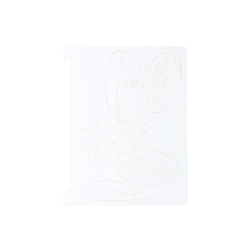 脇田さんのアート作品独特のラインを全面に配したA(ライン)とキャッチーな蝶と吹き出し柄を配したB(蝶)の全2色。Lサイズのロルバーン ポケット付メモ、ロルバーン ダイアリーのリングに取り付けができます。表紙の耐久性を高めてくれるアイテムです。ゴールド箔の箔押しで施したアートが表紙を飾り、お手元のロルバーンをさらに特別な存在にアップデートしてくれます。
