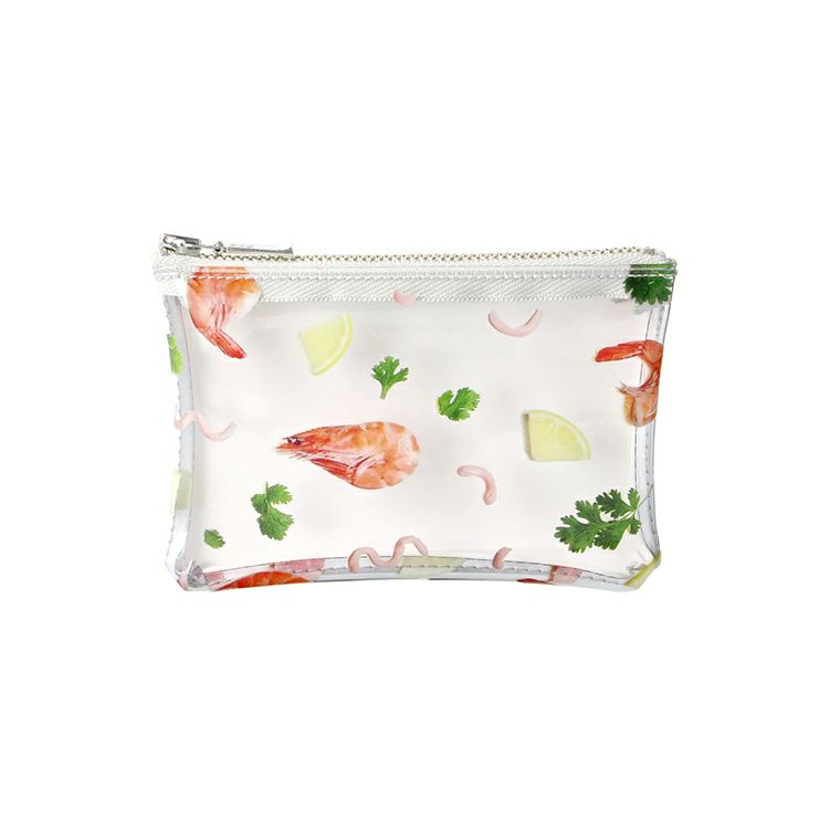 食材を並べたパターンの遊び心あふれるカラフルなポーチ(Sサイズ)