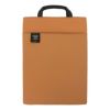 カラーは、ダークグリーン、ブラック、キャメル、ダークブルー、ライトブルー、ライトグレーのほか、新色のワイン、ブラウンを加えた全8色。ワインの内生地にダークブラウン、ブラウンの内生地にはグレーを合わせています。軽やかな生地に合わせた、クールなラインナップです。 13インチのパソコンが収納できる持ち手が付いたパソコンケース。軽量で柔らかなポリエステル素材ですが、側面にはクッション性のあるウレタン素材を入れ、しっかりとホールドします。ポケットは、表面ポケットの中にある内ポケット2つを含めた計3つと、背面に1つあり、書類や文具をまとめて収納できます。パソコンケース単体をバッグのように持ち運びしやすくしました。すっきりしたフォルムとシンプルな作りが魅力。縦型のため、リュックやトートバッグにも出し入れしやすい形状です。