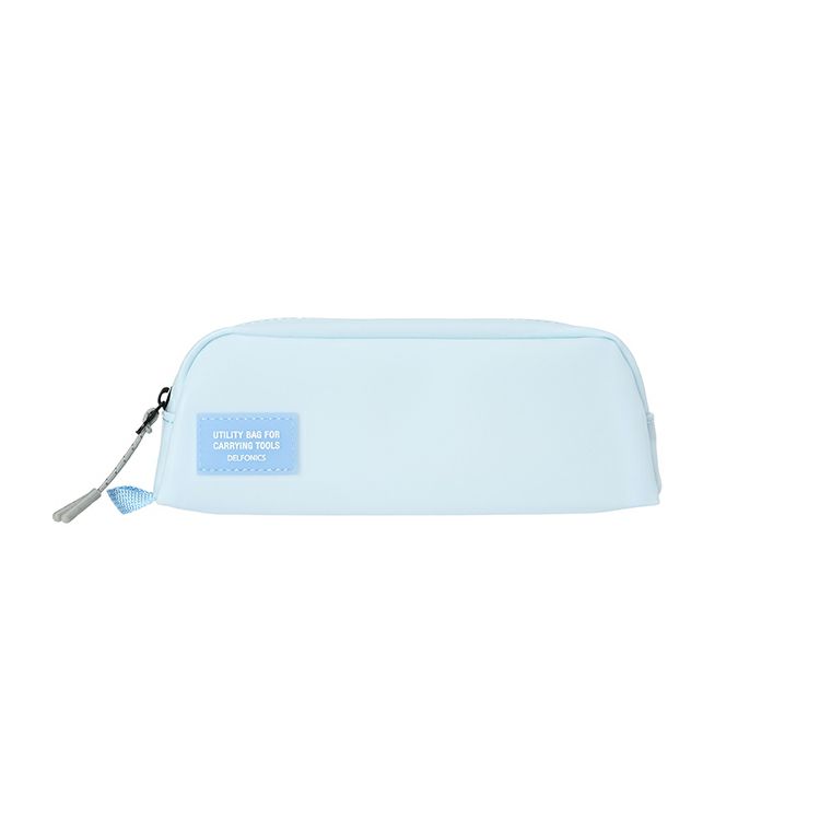 立体で台形型のペンケース。大きく開くファスナーで収納しやすく取り出しやすくなっているため、ペン15本程度や小さなマスキングテープ、修正テープ、ハサミなども収納可能です。