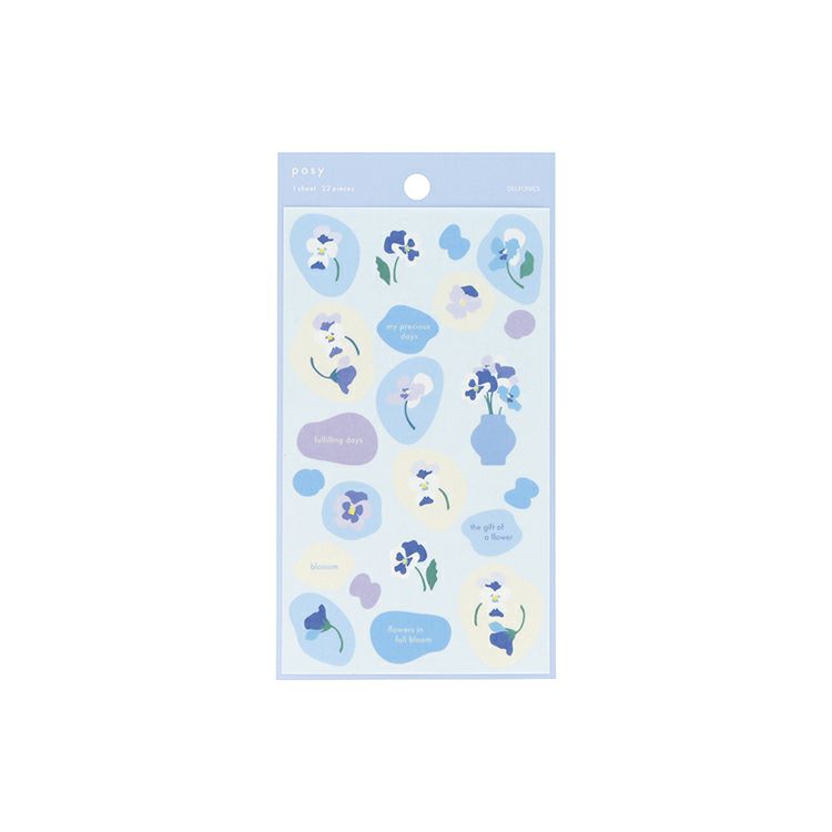 花々がふわりと舞う様子をマットな質感で描いたステーショナリーシリーズ「ポジー」のシール(22ピース)