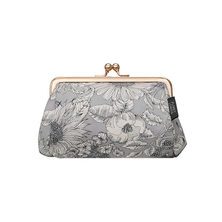 デイリーユースで活躍する、コンパクトな花柄のがま口ポーチ
