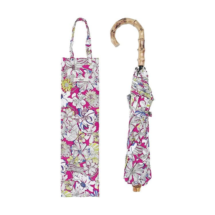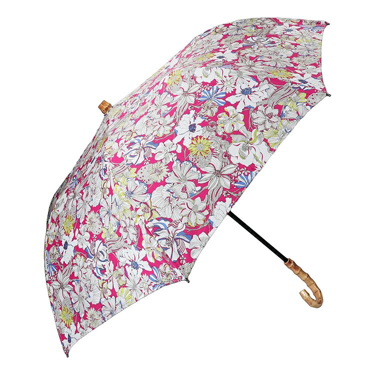 コーディネートのアクセントになる上品な花柄のパラソル(晴雨兼用)