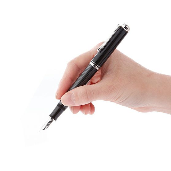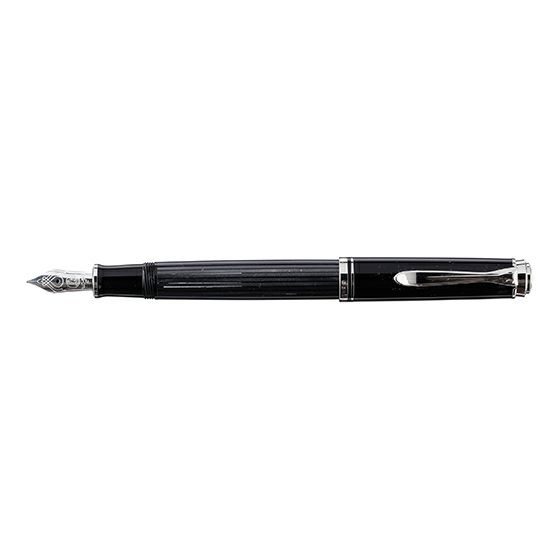 洗練されたブラックストライプにシルバーが映えるコンパクトな吸入式万年筆