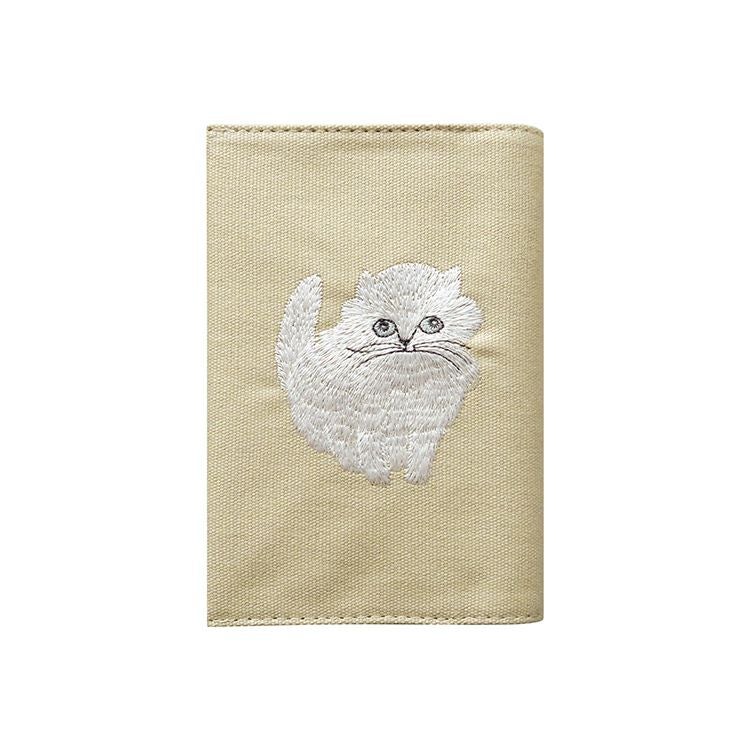 ノスタルジックなネコの刺繍が施されたブックカバー
