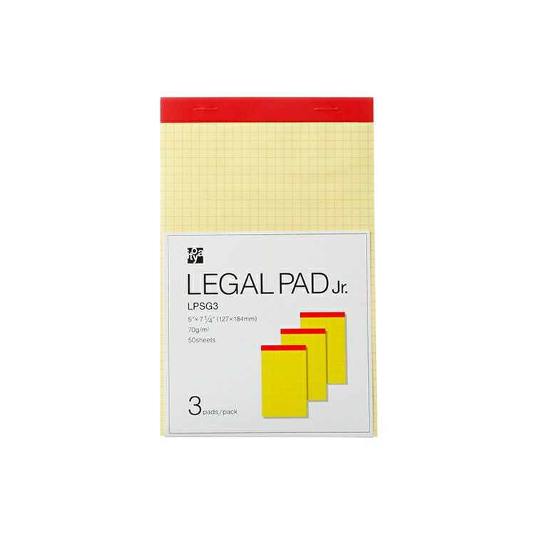 両面にブルーのラインが入った方眼タイプ。しっかりとした厚手の紙で、書き心地も滑らかです。片手でも簡単に切り離しができるミシン目も入っています。リーガルパッドとは、アメリカで弁護士や裁判官などの法律家を中心に、「情報を一時的に記すもの」として使われていたアイテムが、ビジネスシーンにも広がったと言われています。