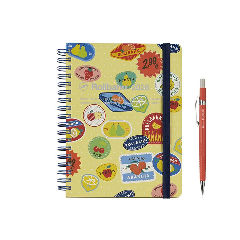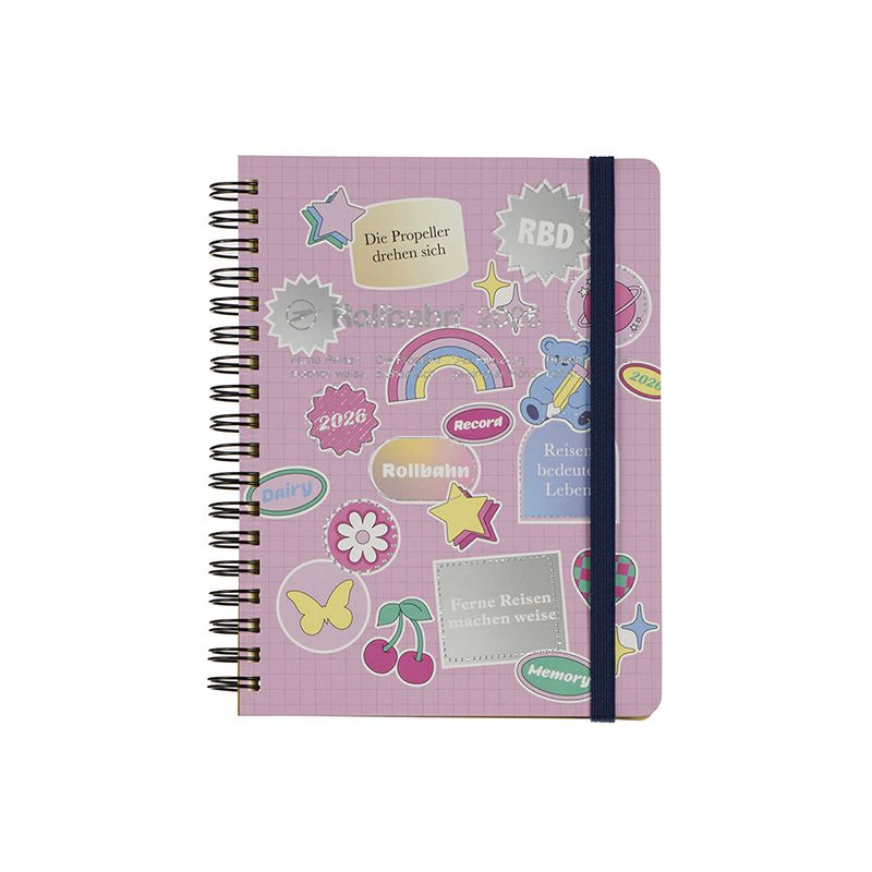 【Lサイズ】ラベルやステッカーでラフにデコレーションしたような、ロルバーンダイアリー(2026年版/2025年10月始まり手帳)