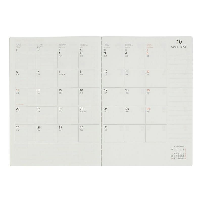 【ダイアリーリフィル】見開き1ヶ月のマンスリータイプ(マンスリー・B6サイズ/2025年10月始まり手帳)