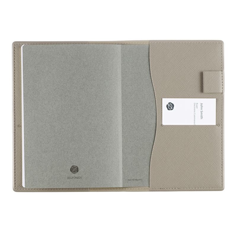 今季は、上品な落ち着きを感じる全9色。光沢が華やかな印象のピンクゴールド、明るい雰囲気のクリーム、ライトピンク、ライトパープル、 シックで落ち着いた印象のブルー、ターコイズ、定番人気のグレージュ、ブラックのほか、DELFONICS Web Shop限定カラーがラインアップ。DELFONICS Web Shop限定カラーのグレーは、カバー内側とステッチにオレンジを使ったバイカラー。小口には、限定カラーのグレー、クリーム、ライトピンク、ライトパープル、ブルー、ピンクゴールドはシルバー箔、その他はゴールド箔が塗られています。ビジネスシーンでも使いやすい色合いで、知的で上品な印象のカラーがそろいました。