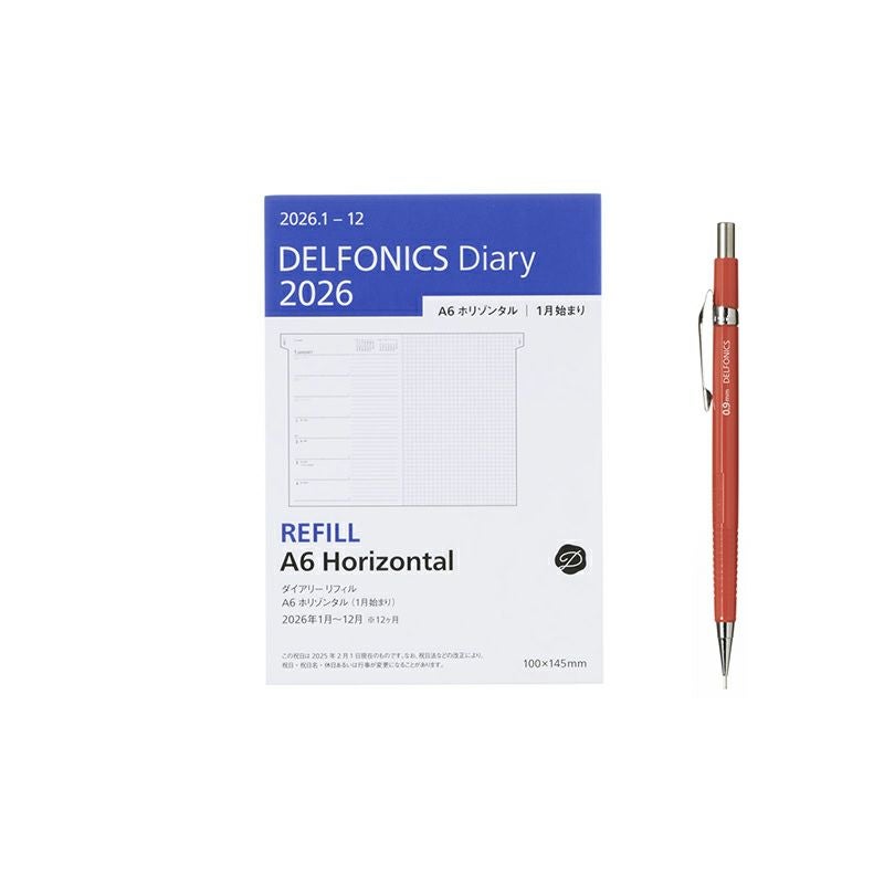 【ダイアリーリフィル】見開き左ページが1週間のホリゾンタルタイプ(ウィークリー・A6サイズ/2026年1月始まり手帳)