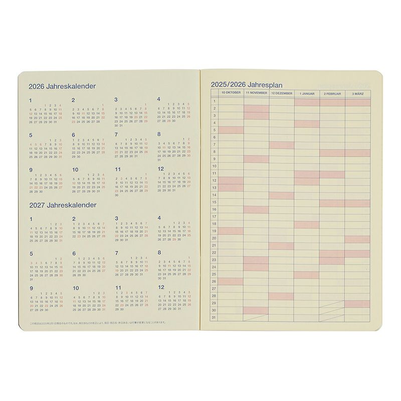 マットな質感の表紙を使った落ち着いた風合いの薄くて軽い、ホチキス綴じノートタイプのロルバーンダイアリー(2026年版/2025年10月始まり手帳)