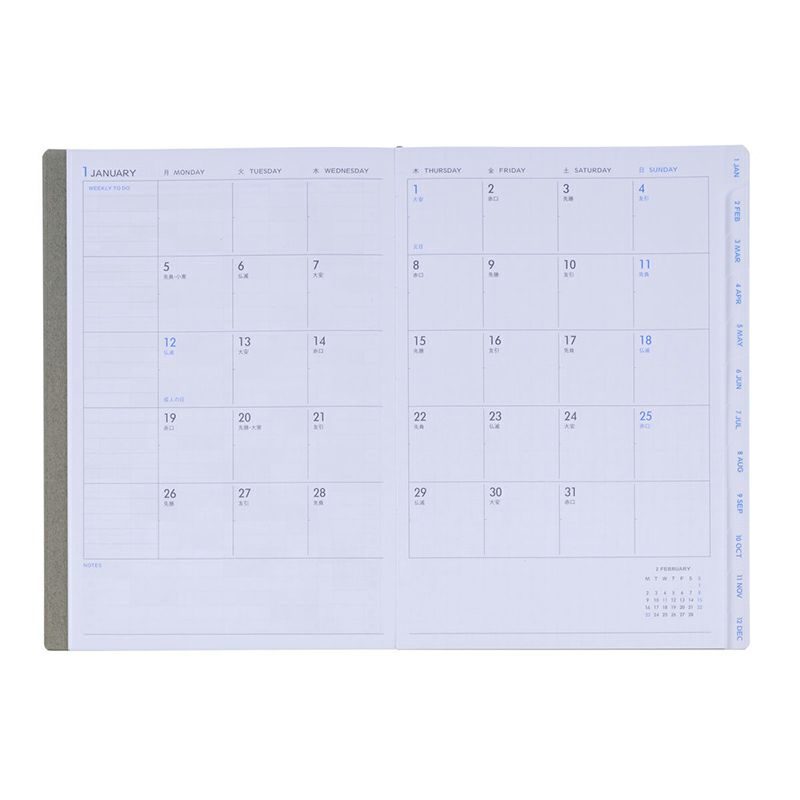 上質な素材感と豊富なカラーが魅力のキトリダイアリー(マンスリー)(2026年版/2026年1月始まり手帳)