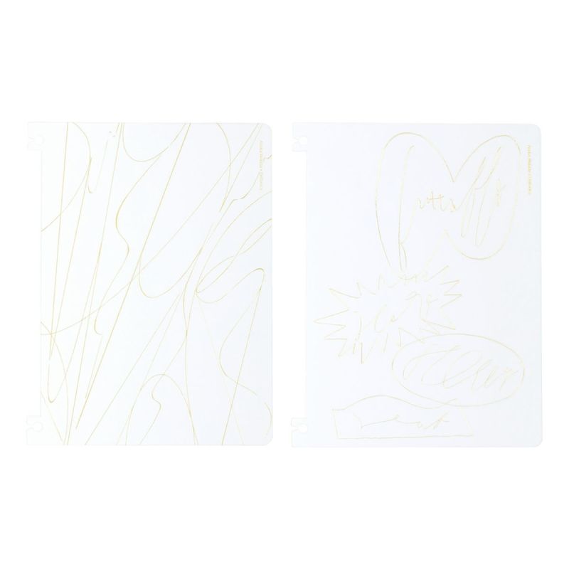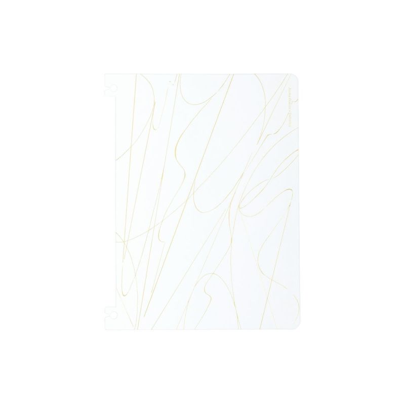 脇田さんのアート作品独特のラインを全面に配したA(ライン)とキャッチーな蝶と吹き出し柄を配したB(蝶)の全2色。Lサイズのロルバーン ポケット付メモ、ロルバーン ダイアリーのリングに取り付けができます。表紙の耐久性を高めてくれるアイテムです。ゴールド箔の箔押しで施したアートが表紙を飾り、お手元のロルバーンをさらに特別な存在にアップデートしてくれます。