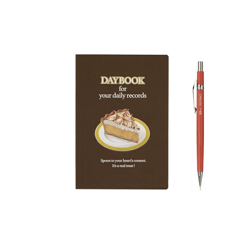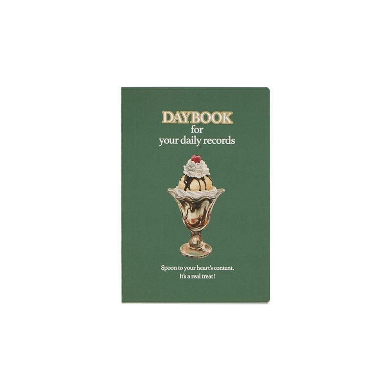 1960年代以前の雑誌広告をイメージし、デザインしたダイアリー。艶やかで甘い、アメリカで愛されているデザートを重みのあるタッチで描きました。クラシックな書体で配した「DAYBOOK」の文字や金の縁取りが世界観を演出しています。