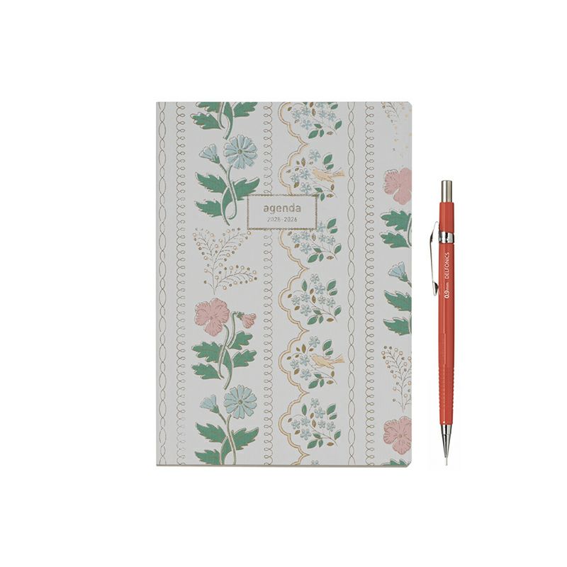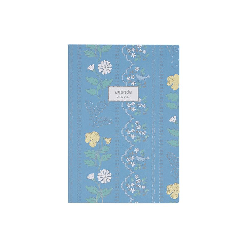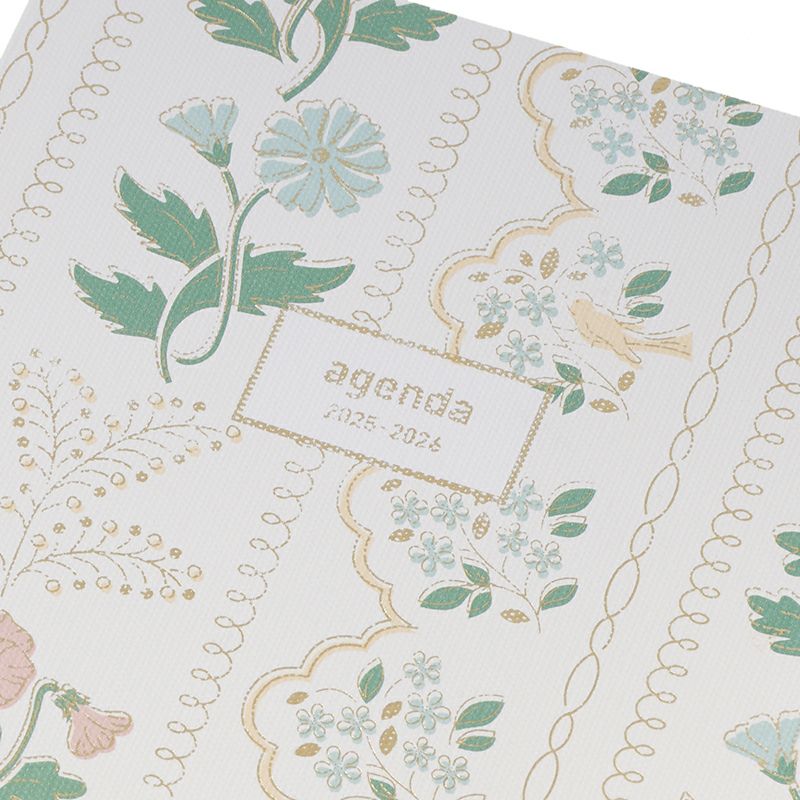 繊細なレースの中に花や鳥を描いたホチキス綴じノートタイプのダイアリー(ウィークリー・ホリゾンタルタイプ)(2026年版/2025年10月始まり手帳)