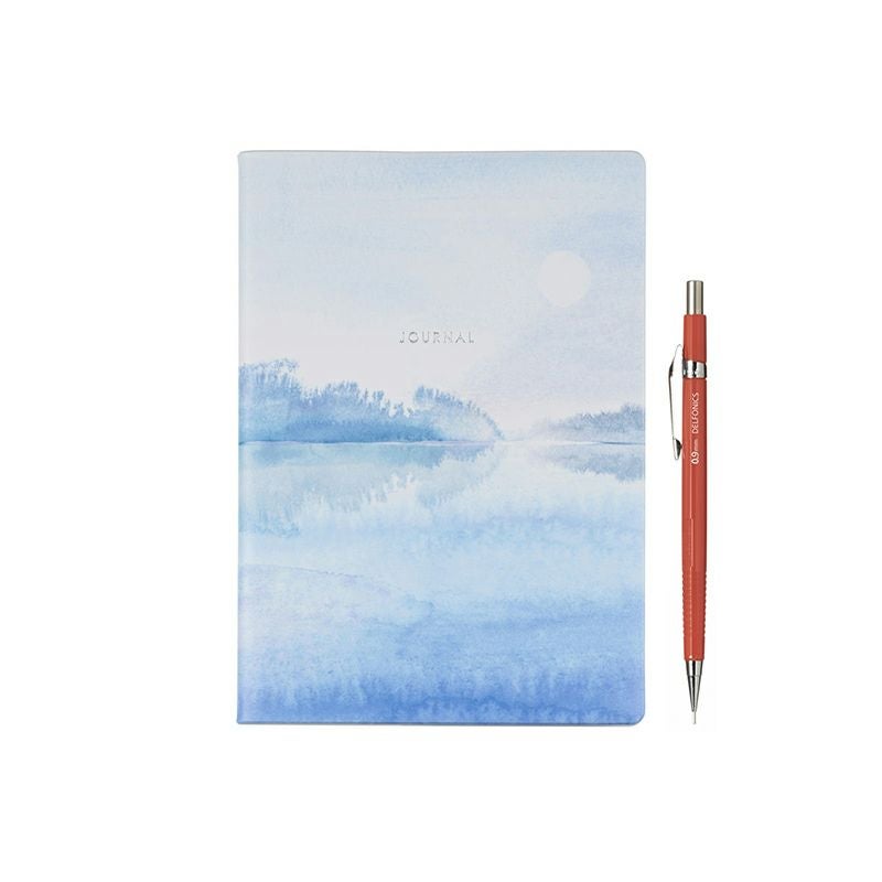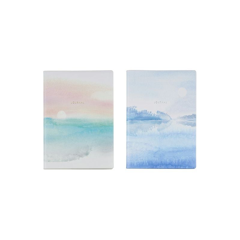 海と空、そして月の満ち欠けを描いたダイアリー。水彩の淡いタッチで、月と水面の静かな余韻を感じさせる繊細なデザインが魅力です。