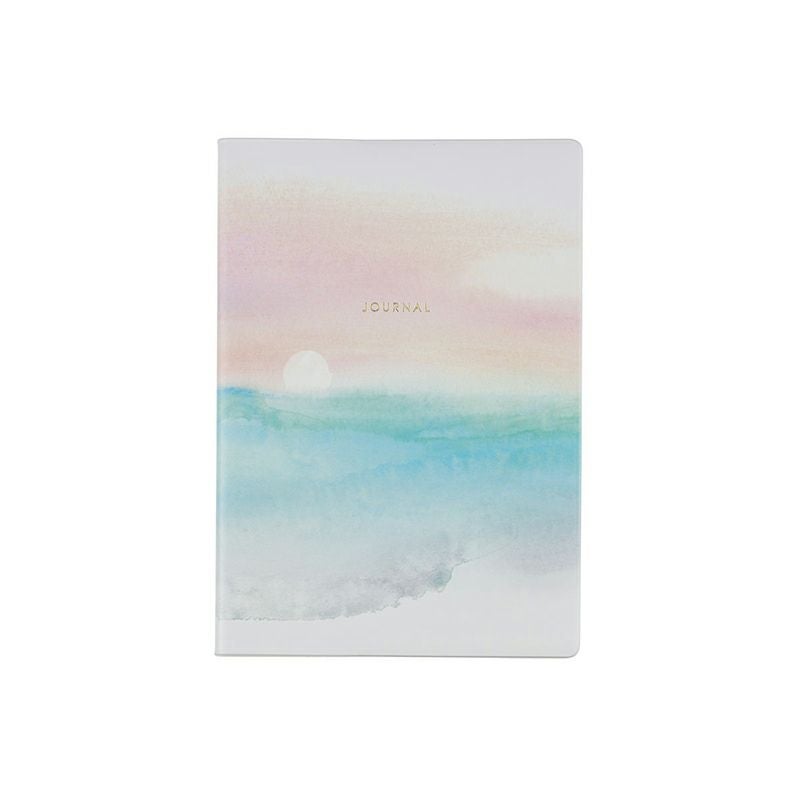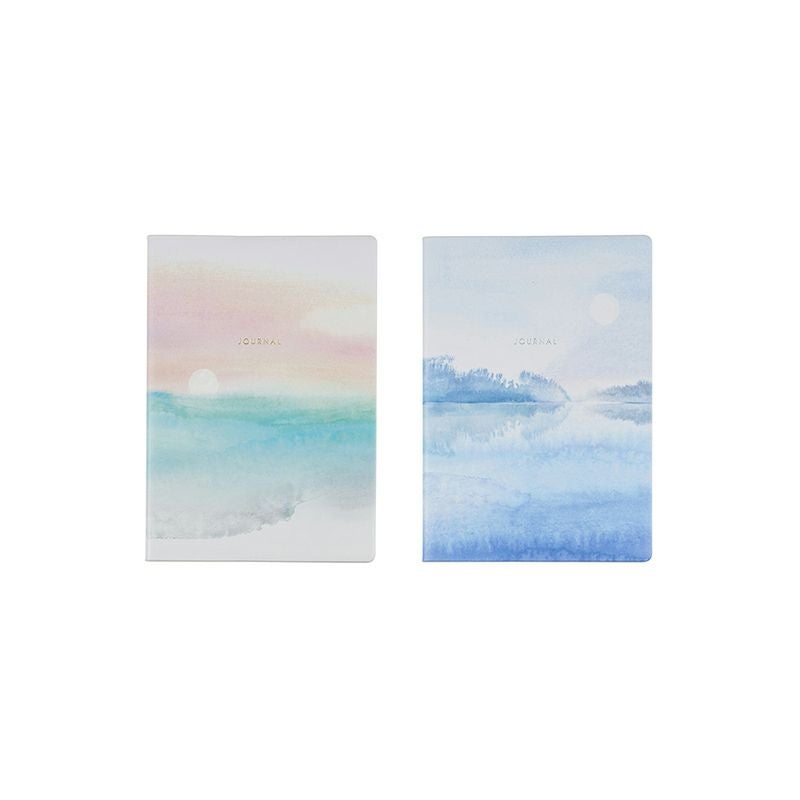 海と空、そして月の満ち欠けを描いたダイアリー。水彩の淡いタッチで、月と水面の静かな余韻を感じさせる繊細なデザインが魅力です。