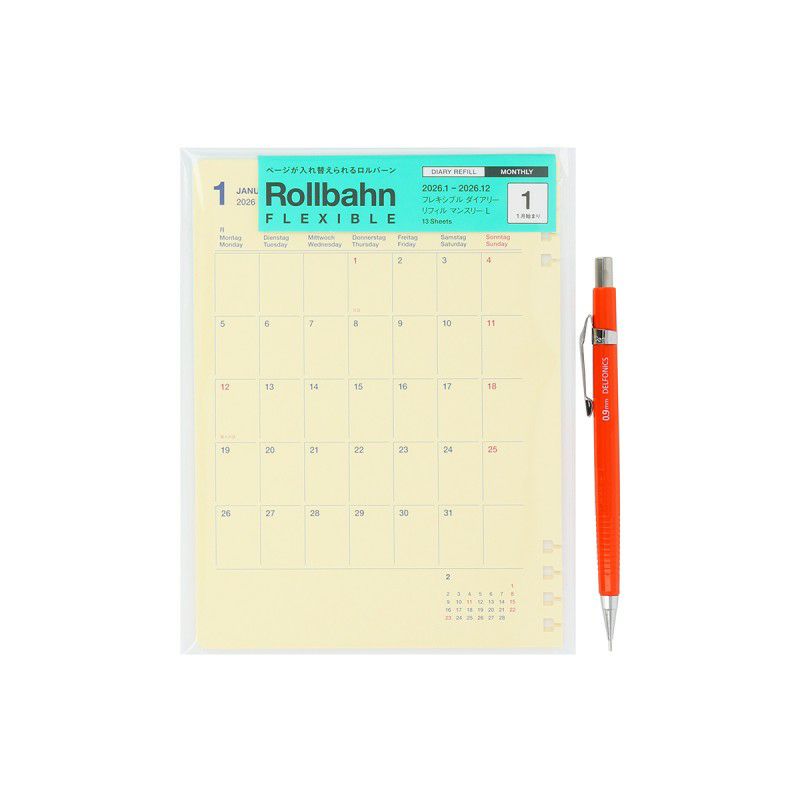 自分好みのダイアリーが作れる、ロルバーン フレキシブル専用ダイアリーリフィル(月間タイプ/2026年1月始まり)