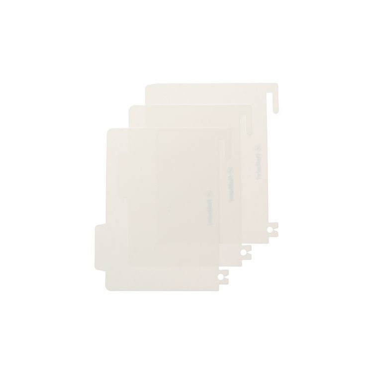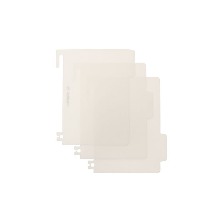 カラーは、ホワイト、ブラック、クリア、クリアグレーの全4色。ロルバーンの鮮やかな表紙カラーを引き立たせるため、モノトーンで仕上げました。張りのあるPP(ポリプロピレン)の3シート入り。