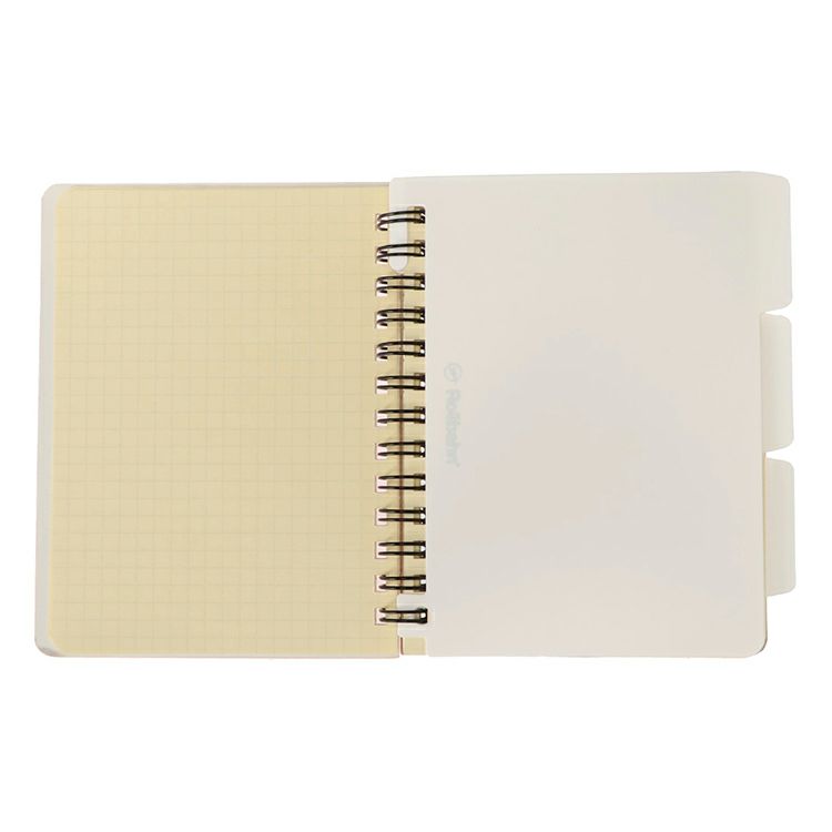 リングに上部の爪を引っ掛け、下部の穴にもセットして固定します。ページの右端から3つに分かれたインデックスが見え、目的のページへ素早くアクセスできます。項目ごとにページを分けたり、ダイアリー部分とメモページの境界線としてなど、ロルバーンを自分好みにアレンジして使えます。Mサイズのほか、L、A5もあります。
