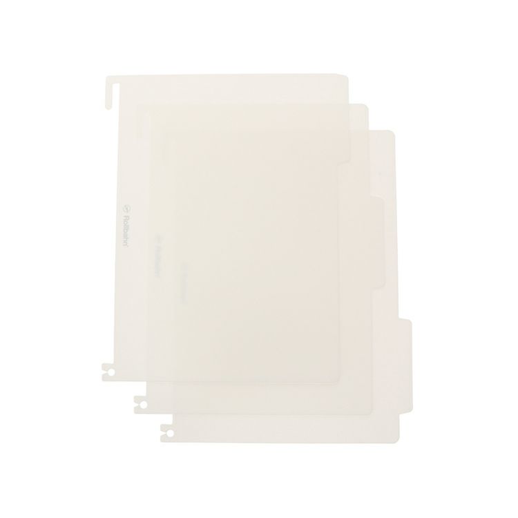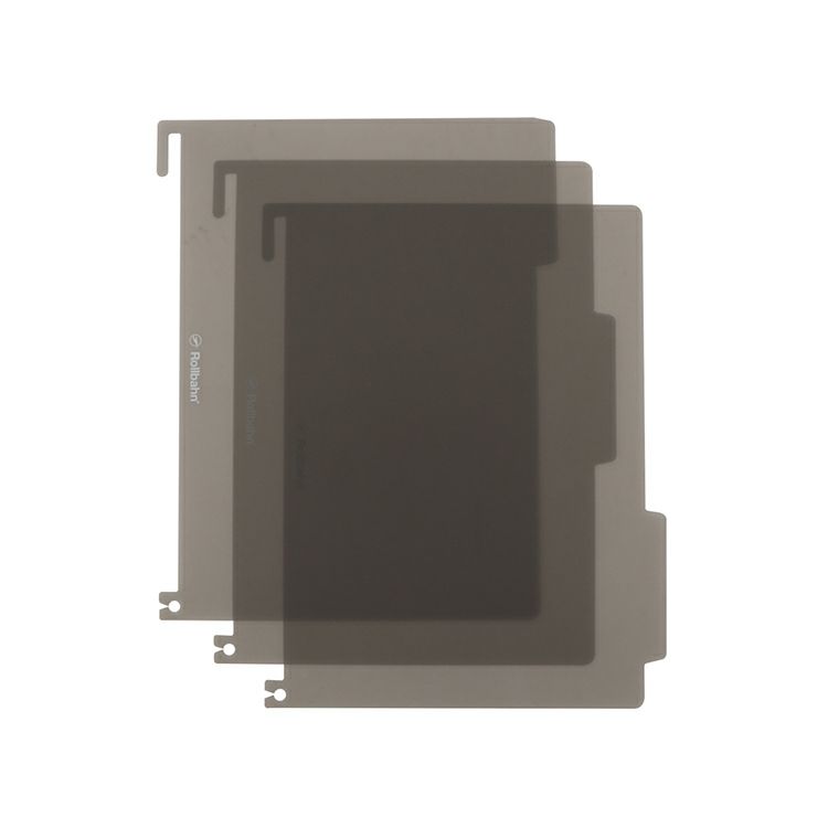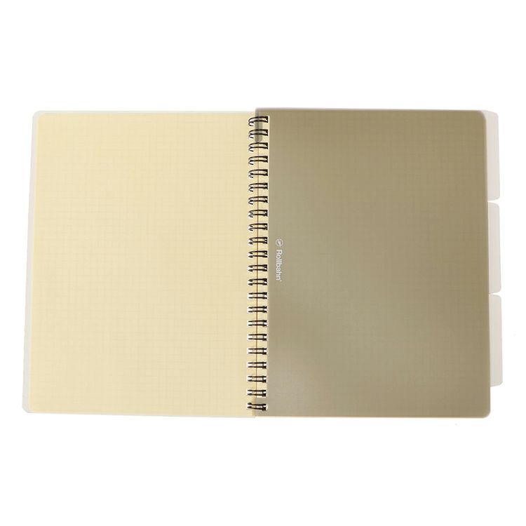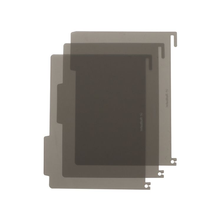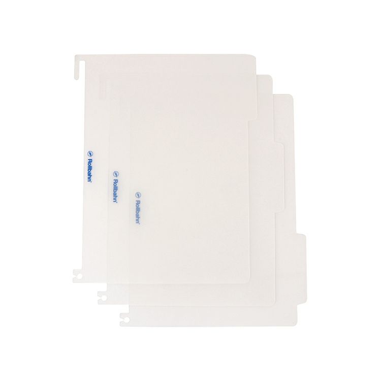 カラーは、クリアグレー、ホワイト、ブラック、クリアの全4色。ロルバーンの鮮やかな表紙カラーを引き立たせるため、モノトーンで仕上げました。張りのあるPP(ポリプロピレン)の3シート入り。