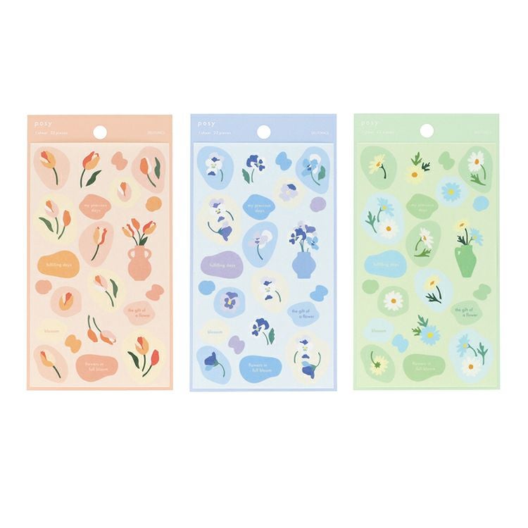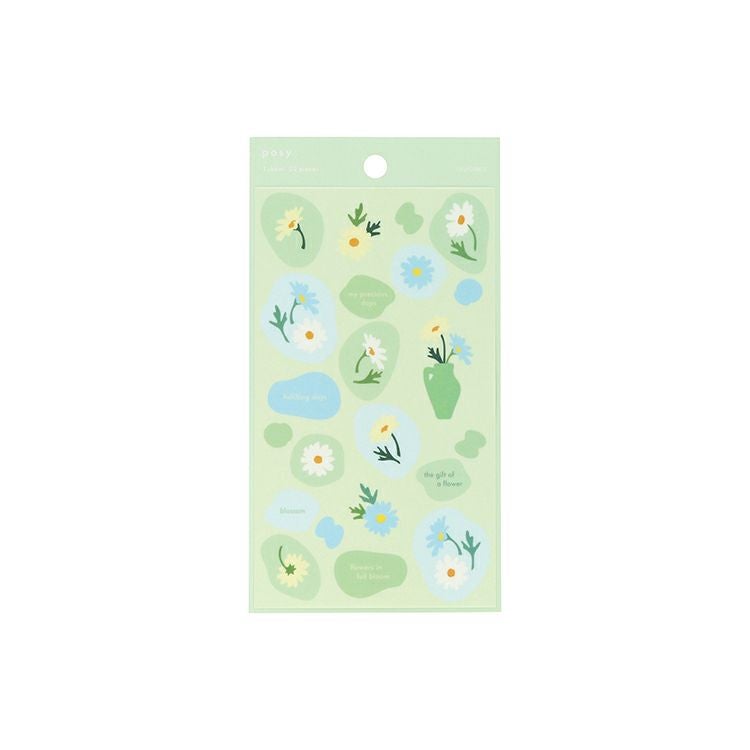 花々がふわりと舞う様子をマットな質感で描いたステーショナリーシリーズ「ポジー」のシール(22ピース)