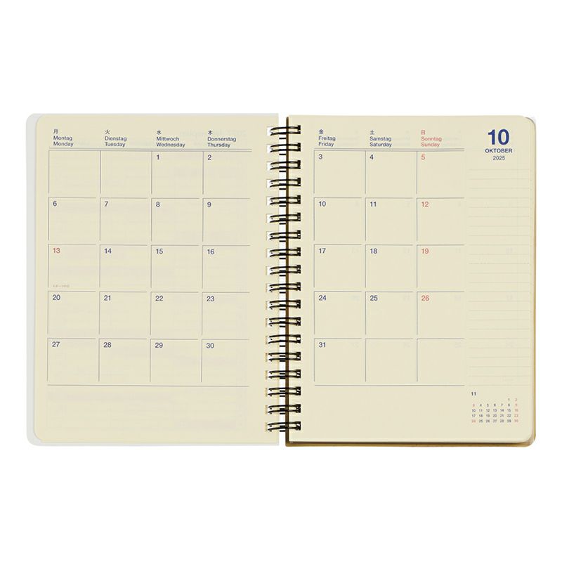 愛らしい動物を描いた、横軸ガントチャート付きのロルバーンダイアリー(2026年版/2025年10月始まり手帳)