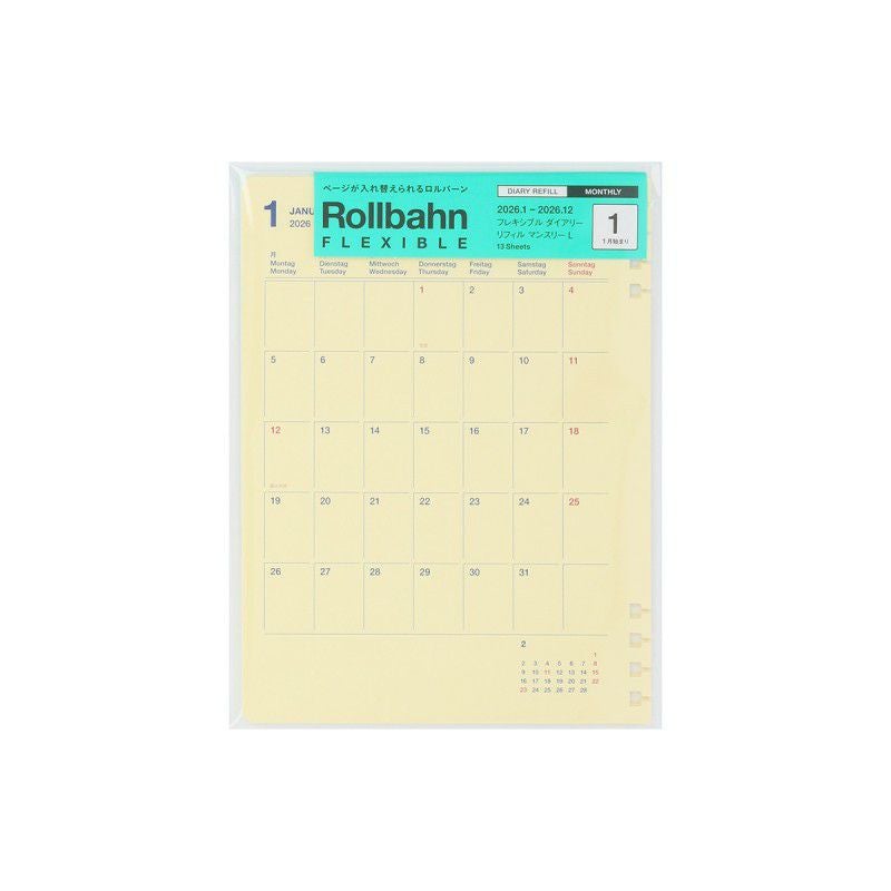 自分好みのダイアリーが作れる、ロルバーン フレキシブル専用ダイアリーリフィル(月間タイプ/2026年1月始まり)