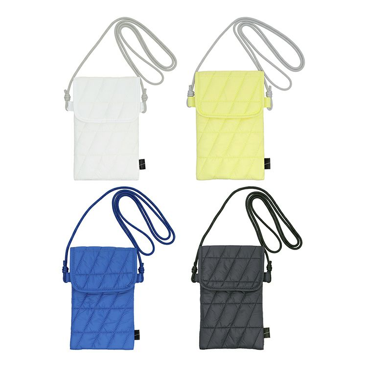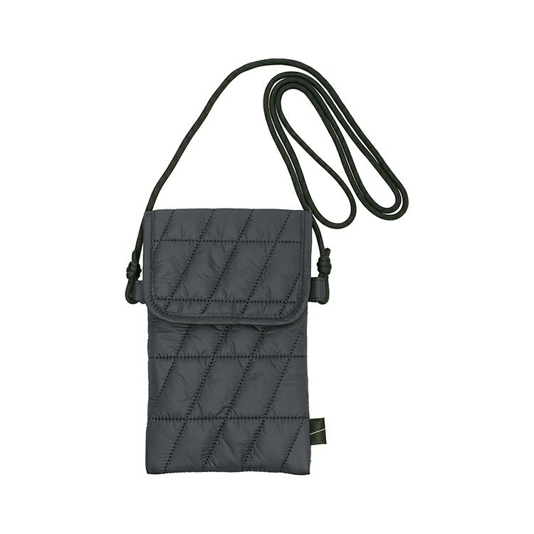 マットな質感とスタイリッシュなステッチが特徴のキルティング生地で作ったスマホバッグ