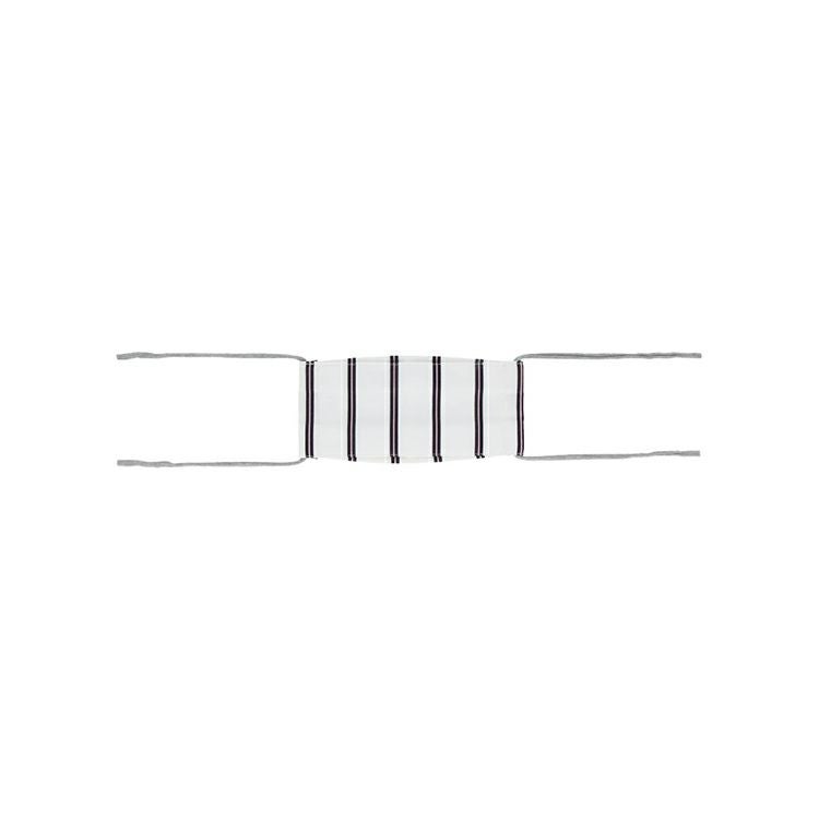 品のよいストライプ柄で、爽やかな印象です。シャツ生地を使用したコットン素材で、さらりとした肌触りの良さが特徴。生地から縫製まで、すべて日本製の丁寧な作りと上質な素材感が目を引きます。マスクの形は、口元に空間を作る立体形状で、呼吸がしやすくメガネが曇りにくい構造がポイント。紐には、耳への負担を軽減する、少し太めのジャージ素材を採用しています。長時間、身に着けていてもストレスの少ない肌触りと付け心地にこだわりました。