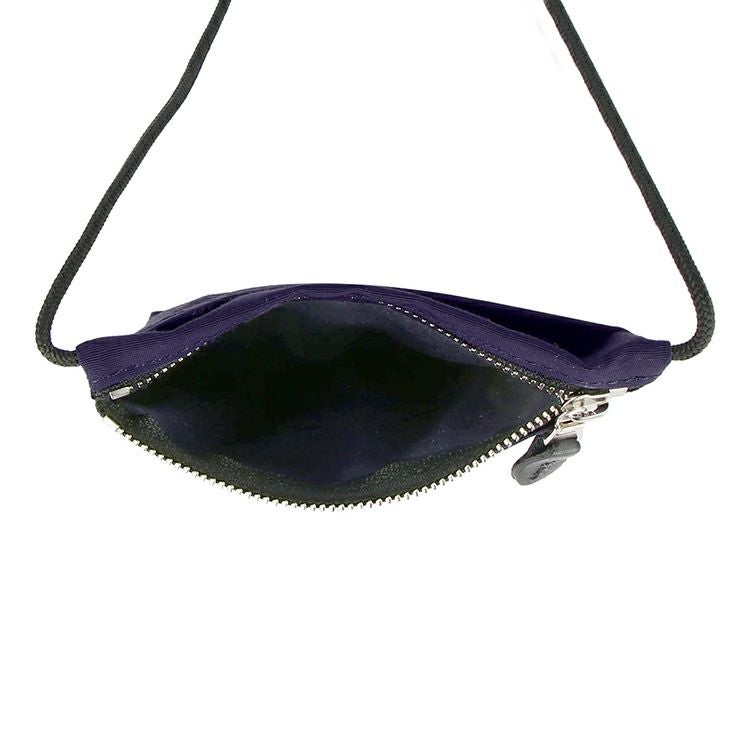 薄マチの軽量な作りで、ミニマルなデザイン。コットンとナイロンを60:40の比率で編み込んだ「64クロス(ロクヨンクロス)」と呼ばれる生地を使用。軽くてしなやかな質感でありながら、汚れ防止や耐久性に優れています。3つのスペースに分かれた作りで、メインのファスナー付きポケットには、財布などの貴重品を入れておくことができます。前面のスリットポケットにはキーストラップが付いており、鍵やパスケースなどを取り付け可能。背面のスリットポケットにもカラビナフックが付属しており、コンパクトなサイズながら収納力に優れています。ストラップは、付属のプラスチックパーツで長さを調節することができます。