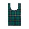カラーバリエーションは、タータンレッド、タータングリーンの2種類。同じサイズのBABY BAGGUは光沢のあるメタリックカラーもあります。スーパーのレジ袋を原型にしたシンプルな形状で、マチをたっぷりとっているのが特徴。リップストップナイロンと呼ばれるパラシュートやテントなどに使用される素材で作られているため、軽量で耐久性があり、長く使えます。
