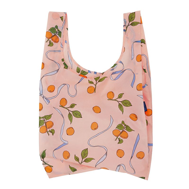 2022年シーズンのモデルから、100%リサイクルのナイロン生地にリニューアル。従来の40%リサイクルナイロンに比べ、よりサステナブルなアイテムになりました。2リットルのペットボトルもゆったり収納できるサイズで、スーパーの買い出しはもちろん、旅行やトレーニングなどのさまざまなシーンで活躍します。付属の収納袋に折り畳んで収納し、手のひらに乗るコンパクトサイズにして持ち運びが可能です。小ぶりサイズのBABY BAGGUもあります。お出かけの際に1つは持っておきたいエコバッグ。プチギフトにもおすすめです。