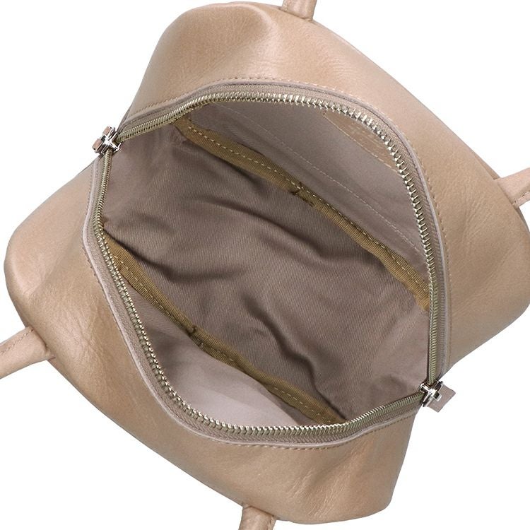 光沢のあるレザーを使用した上品な印象のハンドバッグ