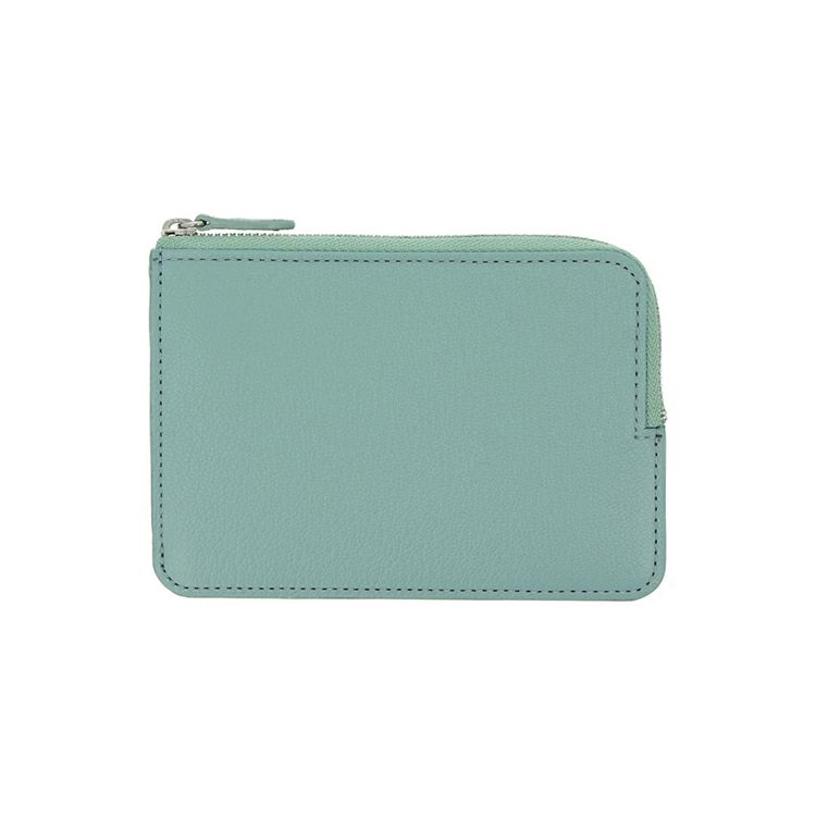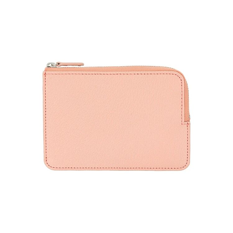 キャッシュレス時代に便利な、機能的かつミニマルな作り。メインのL字型ファスナーが大きく開くため、カードや二つ折りのお札の出し入れもスムーズ。片側のみのマチですが、たっぷりと収納できます。外側にはファスナー付きの小銭入れ付き。内側にはカードポケット2つとフリーポケットが1つあり、脱着式のキーチェーンも備えています。ほのかな光沢のある山羊革は、牛革に比べて薄い生地ながら、強度に優れているのが特長。弾力のあるしなやかな革質と、ナチュラルなシボ模様が上質な印象です。フレンチゴートの別注カラーは、ほかにネームカードケース、ジップカードケース、ペンケース、IDストラップがあります。コーディネートに取り入れやすいカラーで作ったおすすめのアイテムです。