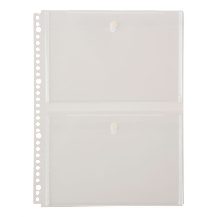 仕様  :2枚入り/B6収納可能/面ファスナー付片面2ポケット/30穴および80mm間隔2穴、4穴兼用/PPシート製台紙(グレー)/PPシート(透明)