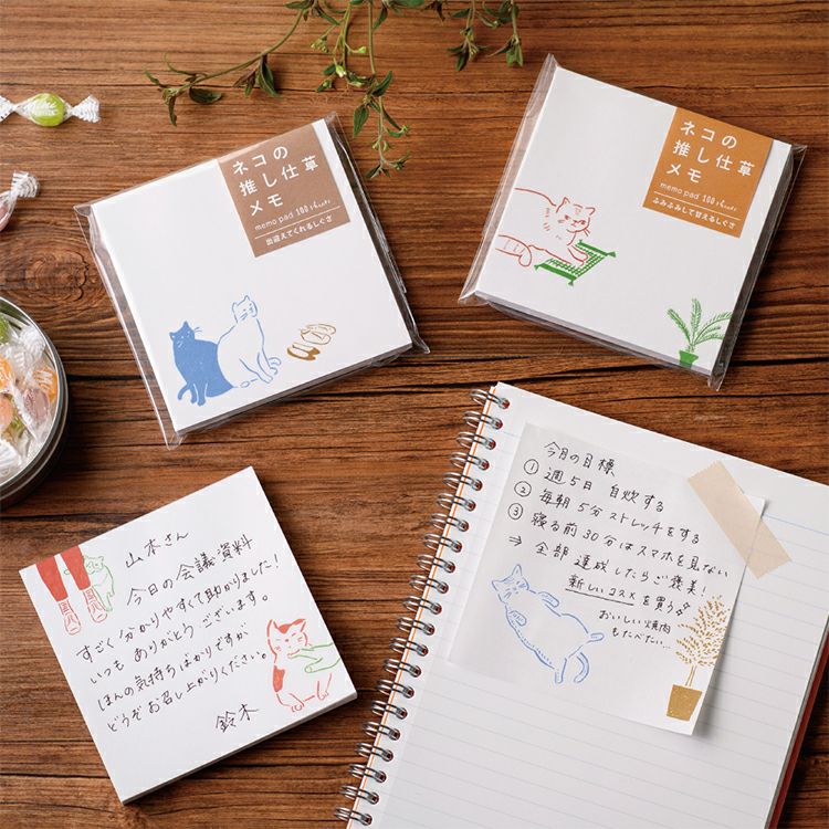 愛らしいネコの仕草が描かれたメモ