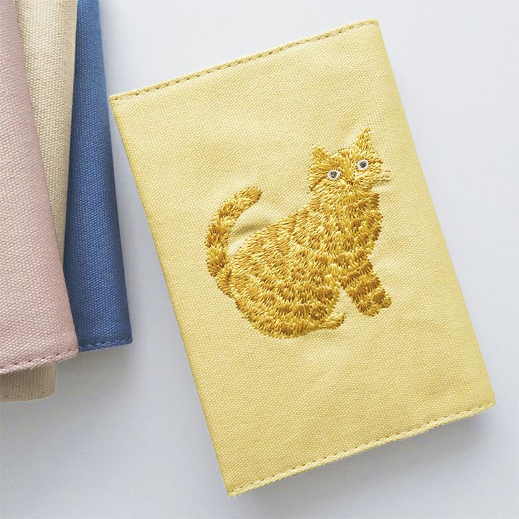 ノスタルジックなネコの刺繍が施されたブックカバー